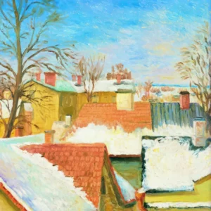 The renowned *Campbell’s Soup Cans* series by Andy Warhol includes 32 individual canvases that show different varieties of Campbell’s soup. The artwork demonstrates Warhol’s interest in consumer products along with the repetitive production methods prevalent in American culture.